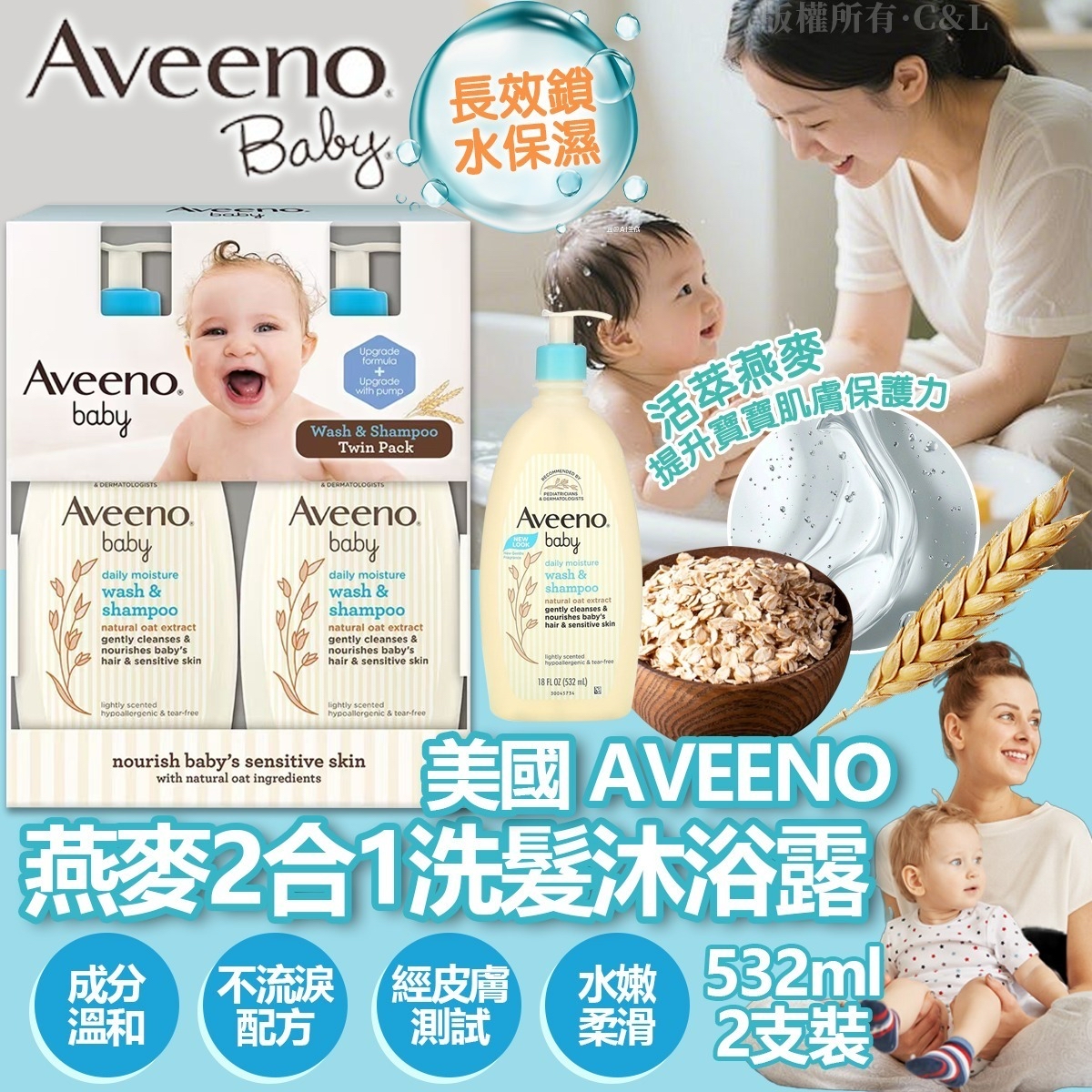 美國🇺🇸直送@限時預購🔛AVEENO燕麥2合1洗髮沐浴露532ml (1套2支)