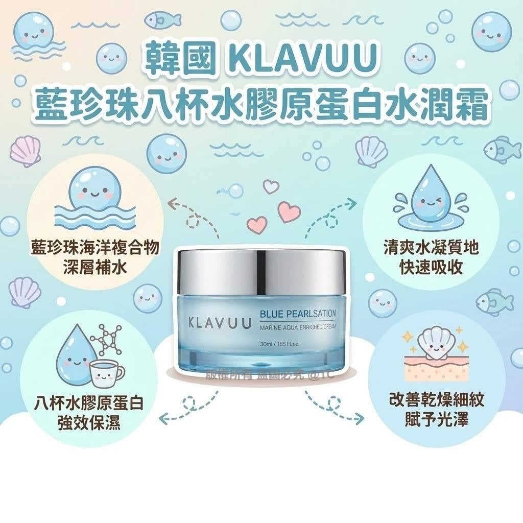 《限時預購》韓國🇰🇷品牌 KLAVUU 藍珍珠八杯水膠原蛋白水潤霜 50ml