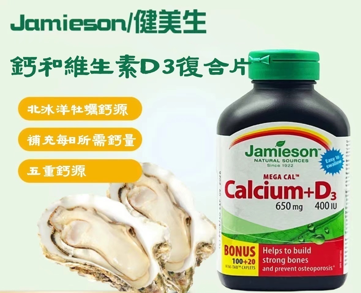*加拿大🇨🇦Jamieson鈣鎂+維他命D3(一樽200粒)* ⛔️截單日期:10月19日 💰$99/樽,2樽或以上樽$95 📆 ✈️📦預計到貨日期:12月中 鈣和鎂是強健骨骼及幫助肌肉生長的必要元素💪 每天補充足夠鈣質,才能有效促進骨質細胞健康,並支持身體各系統維持正常運作。 💁🏻♀️而維他命D3可促進鈣質吸收,能促進腎臟對鈣離子的再吸收,以減少鈣離子從尿液中排走。同時, 鎂和鈣相互支持的吸收能更有效維持骨骼健康。 此外,產品不含鹽(NaCl)、麵筋、乳糖、貝類、人造香料或防腐劑,天然健康。Jamieson鈣+鎂+維他命D3,以2️⃣比1️⃣黃金比例結合鈣和鎂,有助支持強健的骨骼和健康的肌肉功能;配方更加入維他命D3,有助促進鈣吸收。 ✅ 100%加拿大製造,NPN認證 ✅ 促進骨質細胞健康,強健骨骼 ✅ 維他命D3促進鈣質吸收,防止骨鈣減少 ✅ 維持骨骼及牙齒健康 ✅ 支持健康的肌肉功能有助保持骨骼堅韌、鞏固牙齒健康。 服用方法:每日 1-3粒,隨餐服用,並在服用其他藥物之前或之後的幾個小時服用,或遵照醫生指示 EXP:2027/10 == ⚠️ 聲明 ⚠️== 本貨品為平行進口正貨 所有帖文內容只作分享及參考用途。為免混淆視聽,所有商標或版權均屬有關商品品牌商標的持有人,敬請留意 💢 顏色或因拍攝器材或顯示螢幕等因素而與實物有異,以上資料及圖片只供參考,一切以實物為準。 由於廠商更換包裝或不會另行通知我司,而包裝並不影響內容物及其品質與使用體驗,因此恕不因包裝與圖片資料不一而作出退換。 💢貨品在運輸途中導致產品包裝外盒有任何損毀凹陷,但不影響其產品本身食用/使用,或有機會不預設外盒出貨,本司不會作任何更換或退款,介意慎購! 💢外國進口貨品之貨期或受船運/空運延誤影響,恕不接受貨期延誤原因取消訂單,下單前敬請諒解
