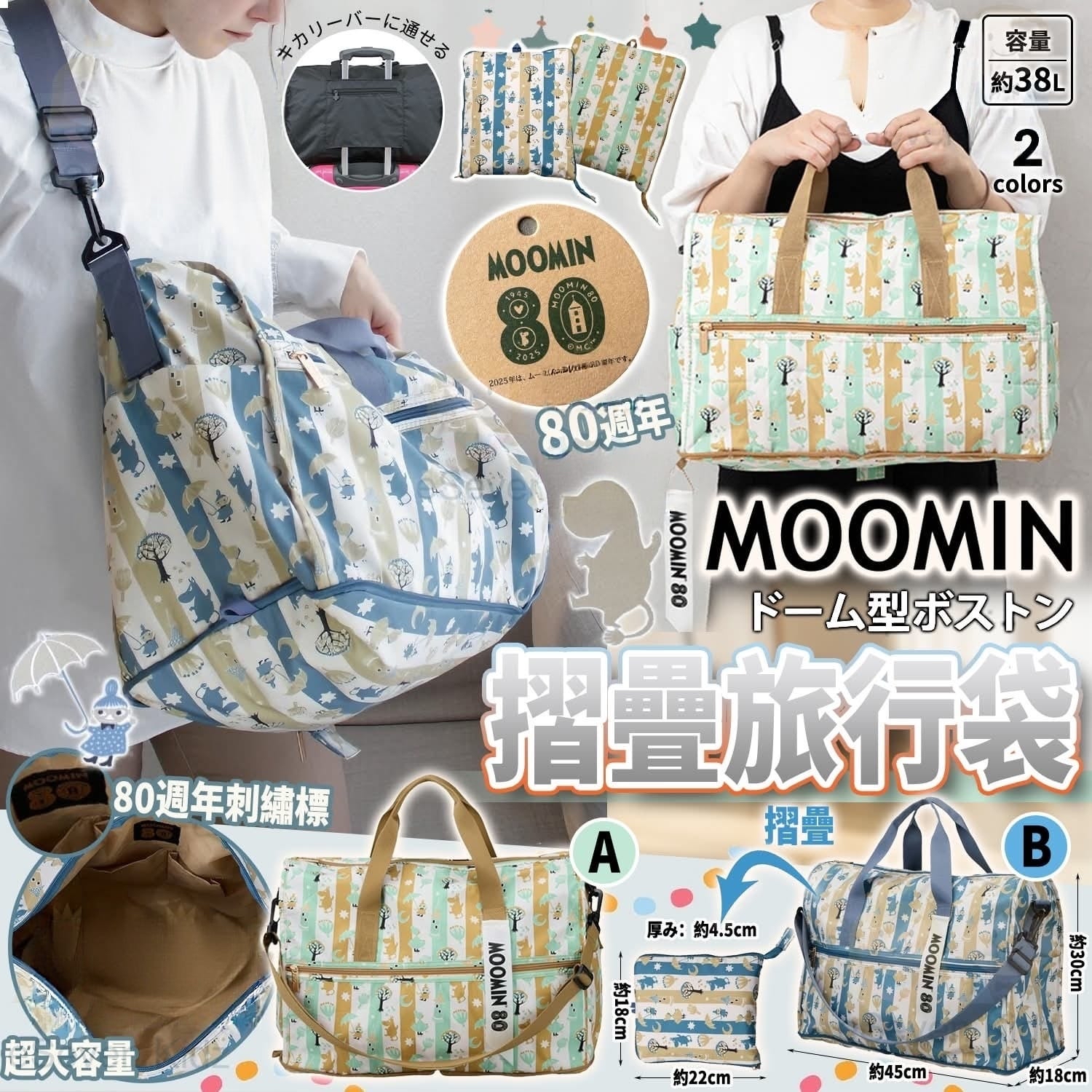 日本🇯🇵MOOMIN 80週年摺疊行李袋