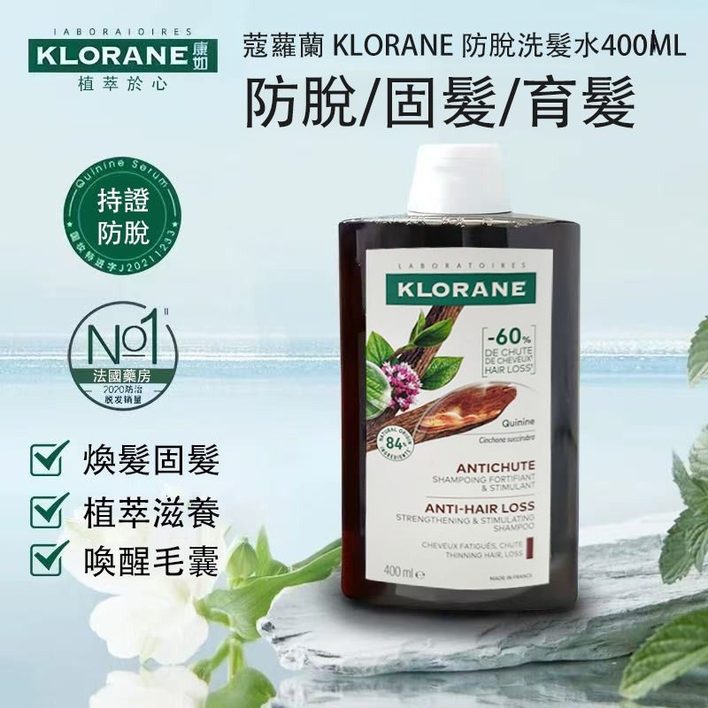 法國KLORANE金雞納有機養髮洗髮精 400ml $119/支;2支以上$115/支 15/10截單 預計11月中旬到貨 天然植物配方深層滋養 不添加矽靈、MI/MCI/Paraben類防腐劑純素配方,可生物分解,配方受認可,準媽媽及喂乳期間適用。 Edelweiss成份補充角蛋白,彈潤秀髪;Caffeine為脆弱的髮絲注入營養,提升成份滋潤及吸收的能力;維他命原B5則可“拋光”髮絲,提升髮絲的柔滑光澤感。 為弱、易斷髮絲灌注養分,深入髮絲核心,由內至外重展光澤秀髮。 營養頭髮、促進頭皮生命力,加強髮質強韌度及彈性 補充頭皮養分 鞏固脆弱髮根 【注意事項】 限外用,皮膚不適時,請停止使用。 產地:法國
