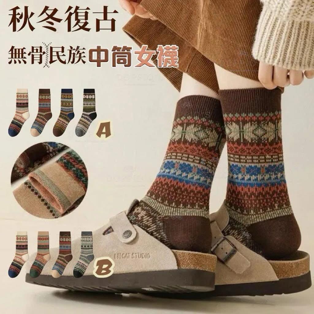 《限時預購》秋冬復古無骨民族中筒襪🍂(1套4對)