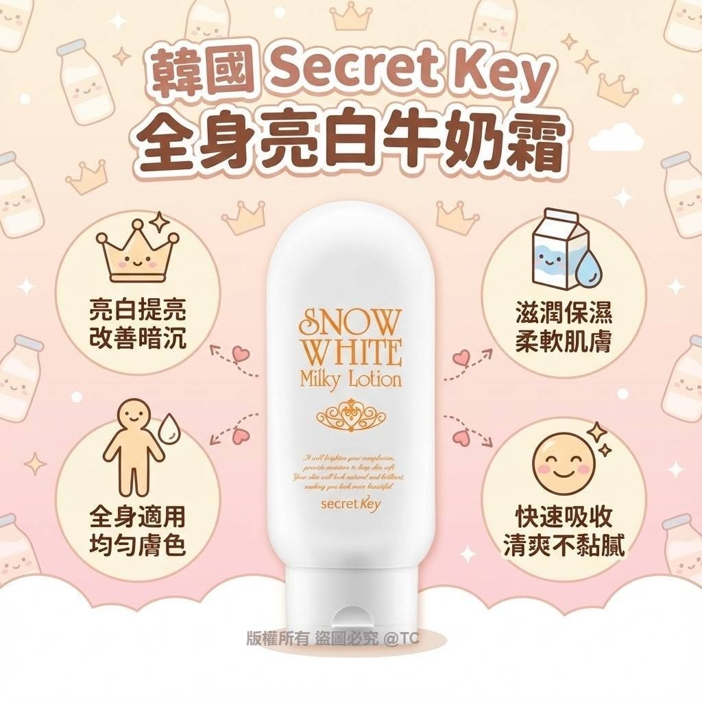 【韓國品牌 Secret Key 全身亮白牛奶霜 120g】
