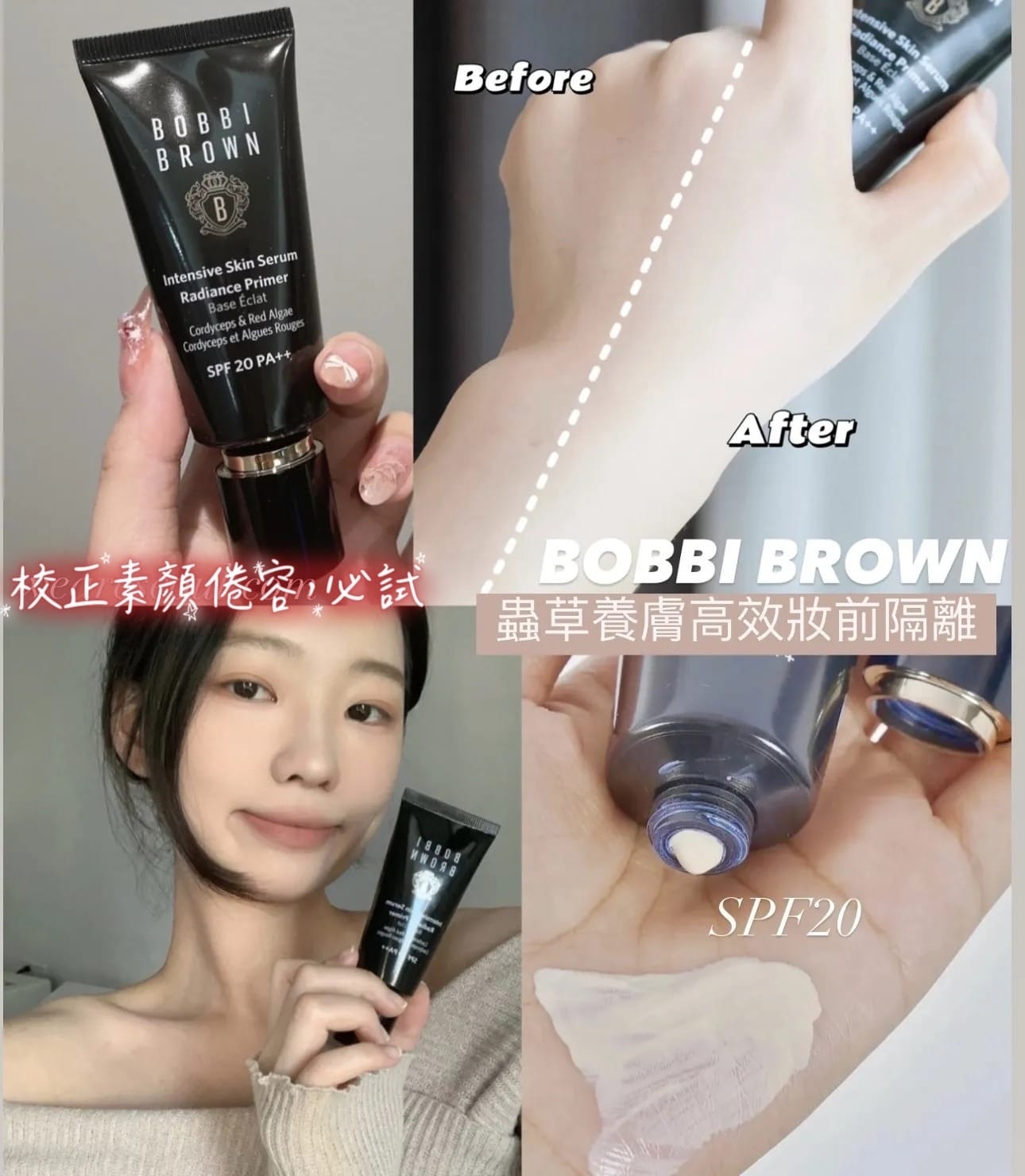 BOBBI BROWN蟲草養膚高效防曬妝前底霜5ml (一套3支) ⛔截單時間:2025-11-16 💰$139/套 📆預計到貨日: 2025-12-10 專櫃正裝賣緊$510 /40ml 💕添加冬蟲夏草精華及人蔘等養膚精華,對抗環境傷害,有效均勻膚色校正疲態倦容 💯蟲草美肌乳還添加了紅海藻+甘草根萃取可舒緩肌膚、減緩泛紅等,就算唔上妝,皮膚已經好靚! 規格:5mlx3=15ml