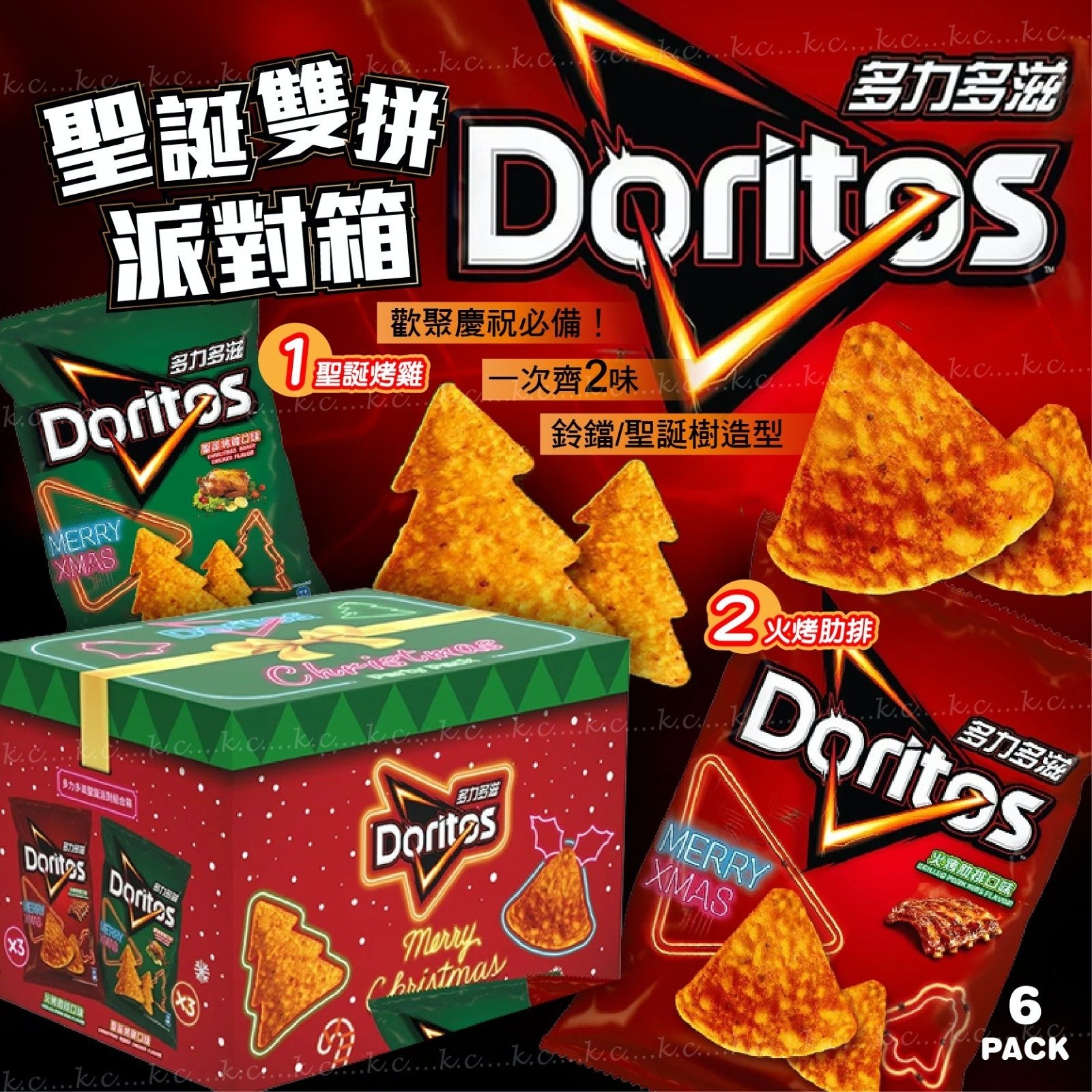 Doritos聖誕雙拼口味派對箱 ⛔截單時間:2025-11-08 💰$149/箱;2箱以上$145/箱 📆預計到貨日: 2025-12-15 🎄🔥【全港最爆聖誕派對新品登場!】🔥🎄 Doritos 聖誕雙拼口味派對箱 (一箱6包) 今年聖誕,派對主角唔係火雞——係 多力多滋聖誕大餐派對箱! 😍 鈴鐺同聖誕樹造型餅體超吸睛,一打開即刻感受到滿滿節日氣氛~✨ 🍗 限定口味雙重衝擊! 👉 聖誕烤雞味 —— 香氣撲鼻,鹹香爆汁,一口就有節日嘅味道! 👉 火烤肋排味 —— 濃郁煙燻香,惹味得嚟仲勁有層次! 🎁 超應景限定包裝! 精美「鈴鐺 + 聖誕樹」造型餅乾配上紅綠派對箱設計,無論開Party定送禮,都保證成場焦點! 產地:台灣 規格:一箱6包(143g x 6包) 保存期限:2026年7月 保存方式:避免陽光直射,請置於陰涼乾燥。