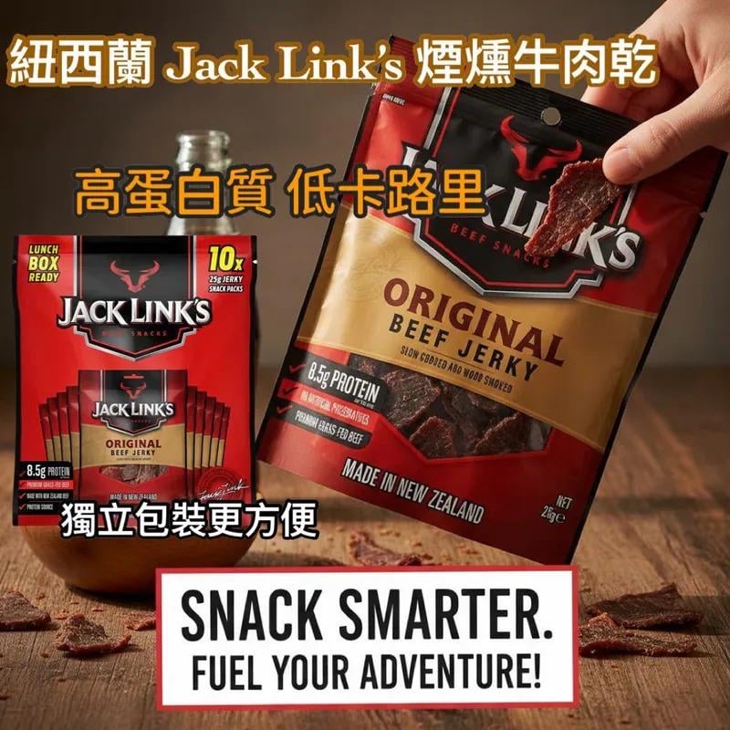 Jack Link's 紐西蘭天然低脂牛肉條 (1袋10包) 💰$199/袋,2袋或以上:$195/袋 ⛔截單日期:2025/11/24 📦預計貨到日:2月中 ✅有咬口 ✅肉汁飽滿 ✅保證一食上癮😋😋 💪🏻健康又超好味😋的Jack Link's牛肉條, 嚴選💯%🇳🇿紐西蘭最新鮮既牛肉🐂 採用先醃後小火慢烤煙燻的製作過程,從而保存牛肉的美味👏🏻👏🏻 比起其他傳統醃燻肉少50%脂肪與卡路里的牛肉乾,含有豐富蛋白質、鐵質及營養素,絕對是健康又美味的零食! ❌絕無任何添加劑及其他不名成分 ❌不含麩質 ❌不含味精 😍80%純牛肉製成,95%以上 fat free超低脂,低碳水化合物 🌟紐西蘭製造 安心保證 🌟蛋白質含量高 🌟含鐵豐富 🌟作為小朋友零食💁♀有助補充蛋白質及骨骼成長 🌟適合招待客人或當開胃菜享用 -規格:1袋10包,每包25g -產地:紐西蘭 -到期日︰2026年4月 ==⚠️ 聲明 ⚠️== 1.本貨品為平行進口正貨。 2.所有帖文內容只作分享及參考用途。為免混淆視聽,所有商標或版權均屬有關商品品牌商標的持有人,敬請留意。 3.空運/海運有可能因各種不明因素影響而延誤到貨,所有貨品一經訂購後,如非廠家缺貨,不設取消/退貨/換貨。 4.貨品在運輸途中導致產品包裝外盒有任何損毀凹陷,但不影響其產品本身食用/使用,或有機會不預設外盒出貨,我司不會作任何更換或退款。 5.以上資料及外盒包裝只供參考,商品外盒原廠有更換新包裝權利,一切以實物為準。 6.顏色或因拍攝器材或顯示螢幕等因素而與實物有異,以上圖片及文字僅供參考,一切以實物為準。