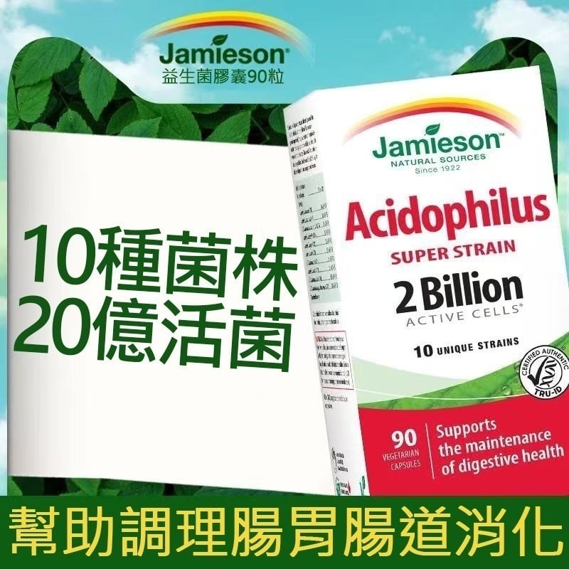 Jamieson 健美生 益生菌膠囊 90粒裝 $109件 $105件 (2件以上) 截單日:10月19日 預計到貨日:11月尾 ✨✨✨✨✨✨✨✨✨ 低至$105件有90粒~~~ 加拿大直送!!!! Jamieson 健美生 益生菌膠囊 90粒裝 小朋友都用得~~~~~ 高活性益生菌 全面呵護腸道健康 Jamieson健美生益生菌膠囊每粒含有20億活性益生菌,來自10種經DNA驗證的益生菌菌株。 這些益生菌能夠在腸道內定植,幫助維持消化系統的健康平衡。先進的包裝技術確保益生菌的活性和新鮮度,保證您在服用時能夠獲得標籤上標明的活性益生菌數量,直至產品過期。 10種優質菌株 多重益生菌組合 這款益生菌膠囊精選了10種有益菌株,包括: – 副乾酪乳桿菌(L. paracasei) 4億CFU – 鼠李糖乳桿菌(L. rhamnosus) 4億CFU – 乳雙歧桿菌亞種乳雙歧桿菌(B. animalis subsp. lactis)3億CFU – 嗜酸乳桿菌(L. acidophilus) 2億CFU – 加氏乳桿菌(L. gasseri) 2億CFU – 乳酸乳球菌(L. lactis) 2億CFU – 羅伊氏乳桿菌(L. reuteri) 1億CFU – 短雙歧桿菌(B. breve) 1億CFU – 雙歧桿菌(B. bifidum) 0.6億CFU – 長雙歧桿菌亞種長雙歧桿菌(B. longum subsp. longum) 0.4億CFU 多菌株組合可以發揮協同作用,從多個角度促進腸道健康。無論是幫助消化、緩解腹部不適,還是調節腸道菌群平衡,這款益生菌都能提供全面的支持。 純素友好 無添加 安心選擇 Jamieson健美生益生菌膠囊採用純素膠囊,不含轉基因成分、麩質、乳糖以及人工色素、香料和防腐劑。無論您是素食者還是對食物敏感的人群,都可以放心選擇。每日1粒,方便易吞服,讓您輕鬆獲得益生菌的滋養。 服用方法 – 3-5歲兒童(在家長監督下):將1粒膠囊的內容物直接加入食物、酸奶等中,攪拌至溶解。不要加入溫熱食物或飲品中。服用益生菌時間應與服用抗生素間隔2-3小時。 – 成人、青少年和6歲以上兒童:每日1粒,隨餐服用。服用益生菌時間應與服用抗生素間隔2-3小時。儲存於15°C至25°C之間,避免兒童接觸。冷藏可保持最大效力和新鮮度。 EXP 2027 -規格:200g ==⚠️ 聲明 ⚠️== 1.本貨品為平行進口貨。 2.所有帖文內容只作分享及參考用途。為免混淆視聽,所有商標或版權均屬有關商品品牌商標的持有人,敬請留意。 3.空運/海運有可能因各種不明因素影響而延誤到貨,成功訂購後,如非斷貨,不設退貨/換貨/退款,不接急單,如不能接受請勿下單。 4.貨品在運輸途中導致產品包裝外盒有任何損毀凹陷,但不影響其產品本身食用/使用,或有機會不預設外盒出貨,本司不會作任何更換或退款,介意慎購