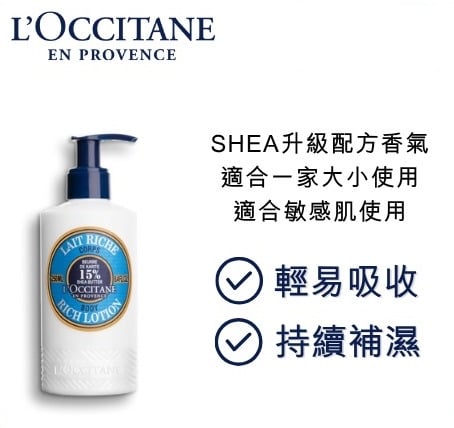 《限時預購》L'Occitane en Provence 15%乳木果身體乳250ml ⛔截單時間:2025-10-24 💰$199/支 📆預計到貨日: 2025-11-25 專櫃$280/件💔 超鍾意呢枝😍干皮天命之乳💘 一轉季已經起紋干到痕 真心推介🙌🏻 質感柔潤 偏厚身奶凍質地,一推就融化🫠 滲透吸收一啲唔油膩 皮膚好似飲飽牛奶🥛 保濕效果超強 維持全日肌膚細滑柔軟💓 淡淡杏仁牛奶香🤤 好舒服好好眠 💯蘊含15%乳木果油、天然蜂蜜及杏子油 💯維他命A、B、C及E 滋養保濕 規格:250ml