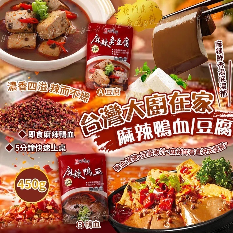 台灣🇹🇼直送@限時預購🔛大廚在家麻辣鴨血/豆腐(450g)