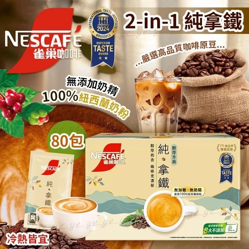 台灣🇹🇼直送@限時預購🔛 雀巢 Nescafe 2-in-1 純拿鐵 (一箱80包)