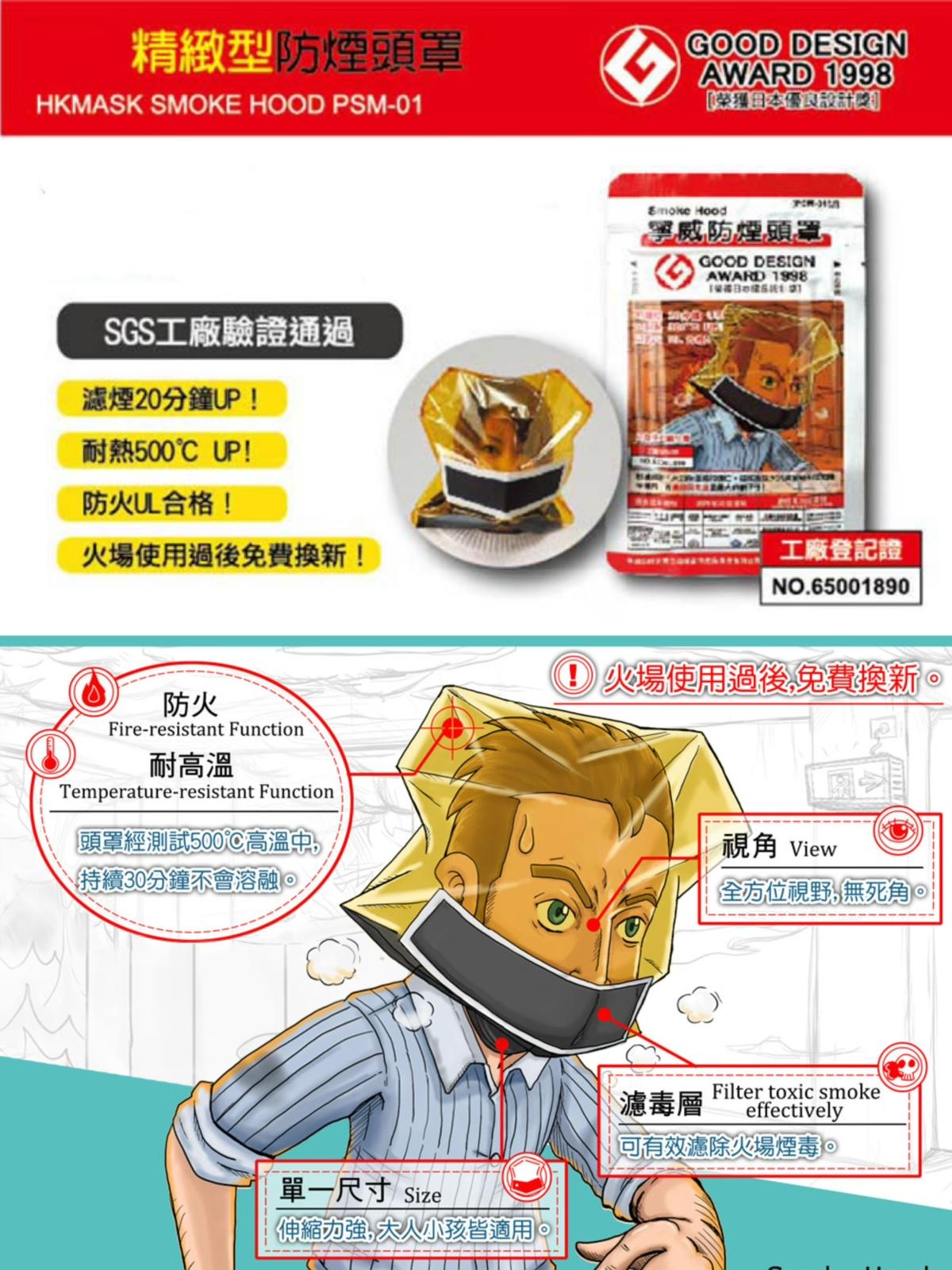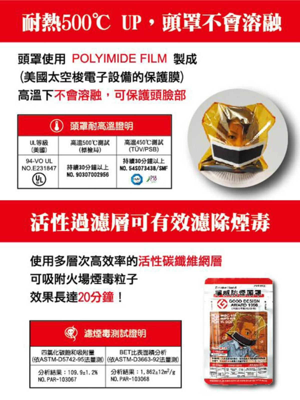 可吸附火場煙毒粒子,時間最長達28分鐘