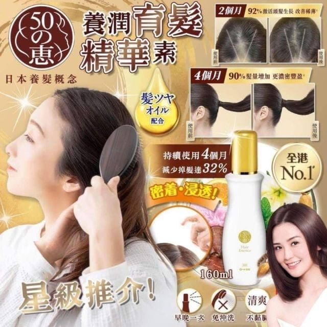 *日本製 樂敦 50惠 育髮精華 160ML* ⛔️截單日期:11月11日 💰 $229/支,2支以上$225/支 📆 ✈️📦預計到貨日期:1月頭 🇯🇵 日本製 · 樂敦 50惠 育髮精華 160ML 🧞♂️【頭髮神仙水】拯救細軟塌髮必備! 💔 頭髮稀薄無力?容易扁塌? 🌟 多位藝人力薦!真人實測4個月顯著見效‼️ 📊 實證效果:減少掉髮達 32% 💃 🌿 秀髮濃密豐盈 · 日本厚生省認證 🏆 ✨ 50種珍貴養髮成分: 人參、蠶砂、地榆、透明質酸、當藥等 全安心配方: 🌱 天然成分 · 溫和不刺激 🚫 不含雌激素 / 不影響荷爾蒙 🚫 不含礦物油 / 合成色素 🚫 不含 MIT/CMIT 防腐劑 🚫 不含游離甲醛及二噁烷 💪 五大育髮功效: ✅ 高效減少掉髮 ✅ 激活頭髮生長 ✅ 提升頭髮密度 ✅ 強韌增厚髮絲 ✅ 減緩白髮生長 💡 使用方式: 1️⃣ 早晚使用,免沖洗 2️⃣ 撥開頭髮,噴嘴對準頭皮根部按壓1-2下 3️⃣ 指腹按摩至吸收 4️⃣ 重點部位可重複使用,總量約6-7下 5️⃣ 最後輕按全頭皮,促進吸收 📍 產地:日本 EXP:2028/7 == ⚠️ 聲明 ⚠️== 本貨品為平行進口正貨 所有帖文內容只作分享及參考用途。為免混淆視聽,所有商標或版權均屬有關商品品牌商標的持有人,敬請留意 💢 顏色或因拍攝器材或顯示螢幕等因素而與實物有異,以上資料及圖片只供參考,一切以實物為準。 由於廠商更換包裝或不會另行通知我司,而包裝並不影響內容物及其品質與使用體驗,因此恕不因包裝與圖片資料不一而作出退換。 💢貨品在運輸途中導致產品包裝外盒有任何損毀凹陷,但不影響其產品本身食用/使用,或有機會不預設外盒出貨,本司不會作任何更換或退款,介意慎購! 💢外國進口貨品之貨期或受船運/空運延誤影響,恕不接受貨期延誤原因取消訂單,下單前敬請諒解