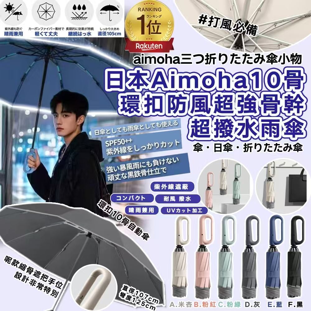 日本🇯🇵直送@限時預購🔛Aimoha 10骨環扣防風超強骨幹超撥水雨