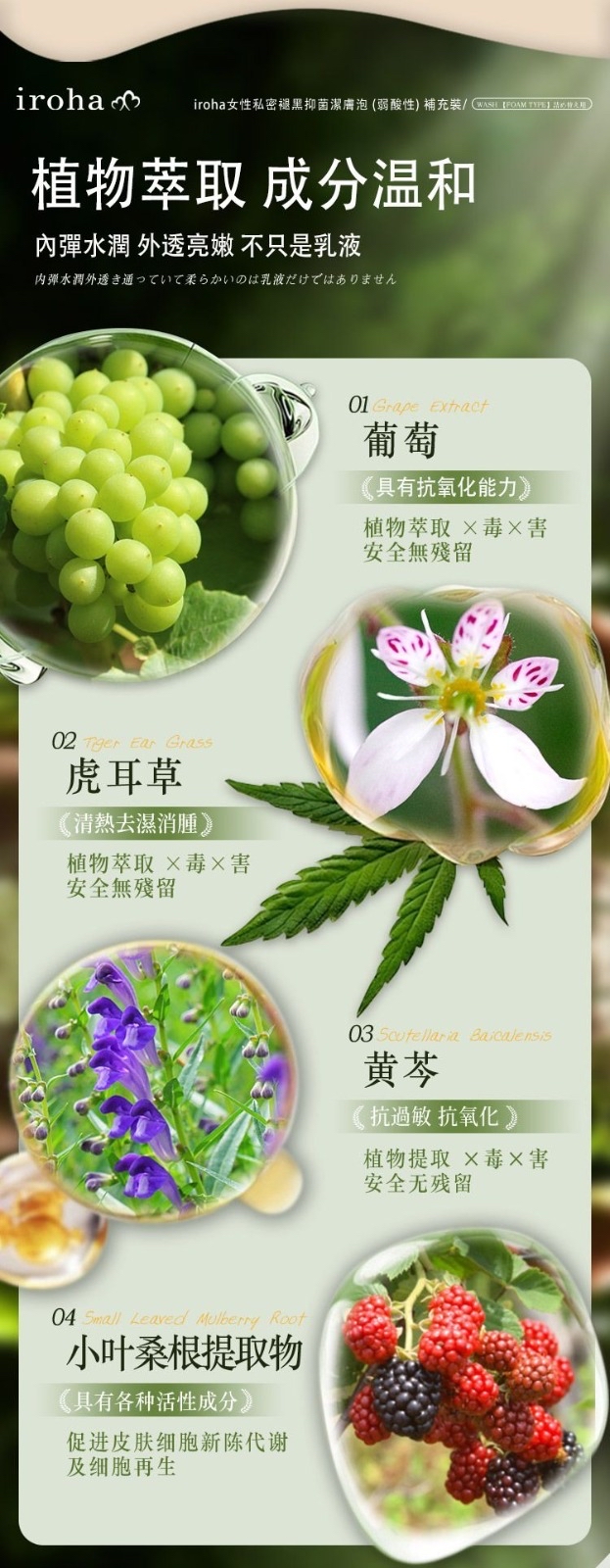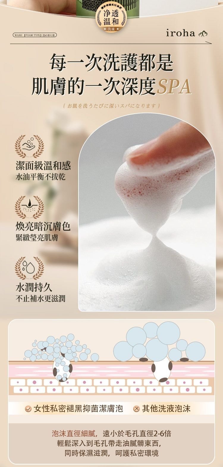 日本🇯🇵直送@限時預購🔛Iroha女性私密褪黑抑菌潔膚泡(135ml)