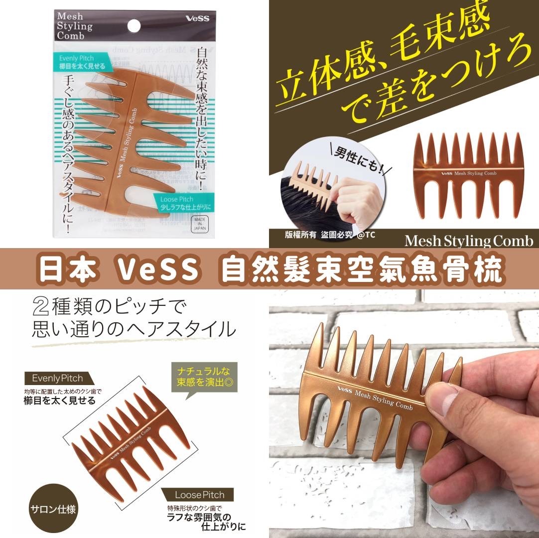 【日本製造 VeSS 自然髮束空氣魚骨梳】 ⛔ 截單時間:1月26日 💰 $59/把;2把或以上$55/把 📆 預計到貨日: 3月上旬 想打造自然手梳感造型✨這款造型梳配有特製粗齒設計👩🦱梳理時可營造出自然寬鬆的紋理效果💫梳齒均勻排列,能輕鬆做出隨性又時尚的髮型🎨適合日常造型或髮型打底使用💇♀️ ✅粗齒設計營造自然線條感✨ ✅梳齒排列均勻可見明顯紋理🌈 ✅特殊形狀梳齒打造隨性感造型💁♀️ ✅適合做出立體層次感造型🎨 產地:日本 規格:一把入