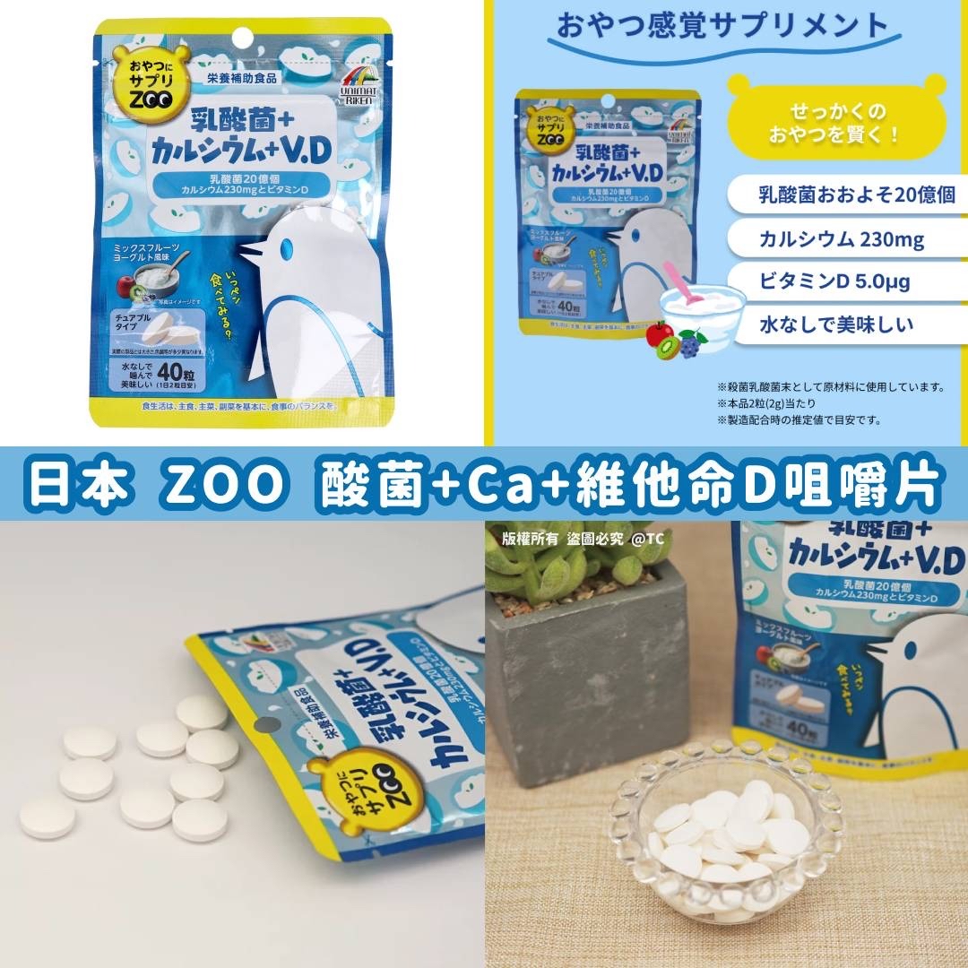 日本🇯🇵直送@限時預購🔛ZOO 酸菌+鈣+維他命D咀嚼片 (一包40粒入)