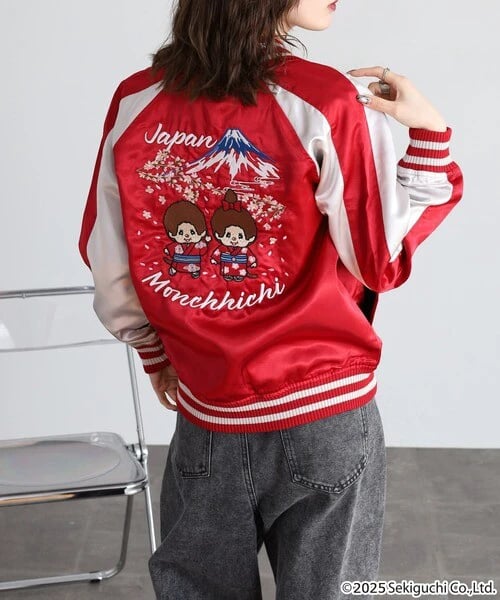 這款橫須賀夾克是人氣Monchhichi單品,胸前飾有Monchhichi君的貼布。