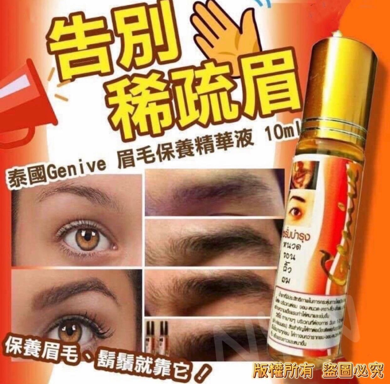 泰國🇹🇭Genive眉毛保養精華液 ⛔截單時間:2025-11-16 $59/支;2支以上$55/支 📆預計到貨日:2025-11-26 呢隻眉毛精華液有3種功效😱 👉唔止能夠令眼眉毛再生 👉仲可以搽係前額髮線位, 令你後移髮線移前, 令變幼頭髮生長長粗, 變回濃密 👉男仕搽係鬍鬚位置, 能令鬍鬚更濃密 👀👀專門針對稀疏眉毛, 長期拔眉而導致的眉毛損害或隨年齡增長產生的眉毛老化, 幫助你改善眉毛外觀, 不用再做"無眉娘"😍 ✨有效活化毛囊,其因子能促進毛髮再生。 ✨添加極致賦活胜肽和天然泰國草本配方, 能滋養, 調節及修復眉毛, 並減低化妝品的有害影響,如含鉛的眉粉眉筆等,讓你擁有強健自然的眉毛。 ✨保濕及強化細胞, 給予毛髮及皮膚組織光澤及保濕作用,能刺激細胞再生並修復組織。 ✨調節毛髮PH值 ✨獨家滋養配方提供眉毛毛囊所需的養份, 加快新陳代謝, 重建並促進毛囊再生 🌟使用方法: 走珠式設計 使用前請先搖勻, 每天早晚各使用一次。 ➡眉毛:於清潔面部後, 直接擦在眉毛 ➡前額髮線:洗頭後, 直接擦在髮線位置 使用2-3個星期即可看到效果👍 💟建議2支為1個療程 💟1支10ml, 大約可用3個月 💟男👨女👩均可使用 規格:10ml