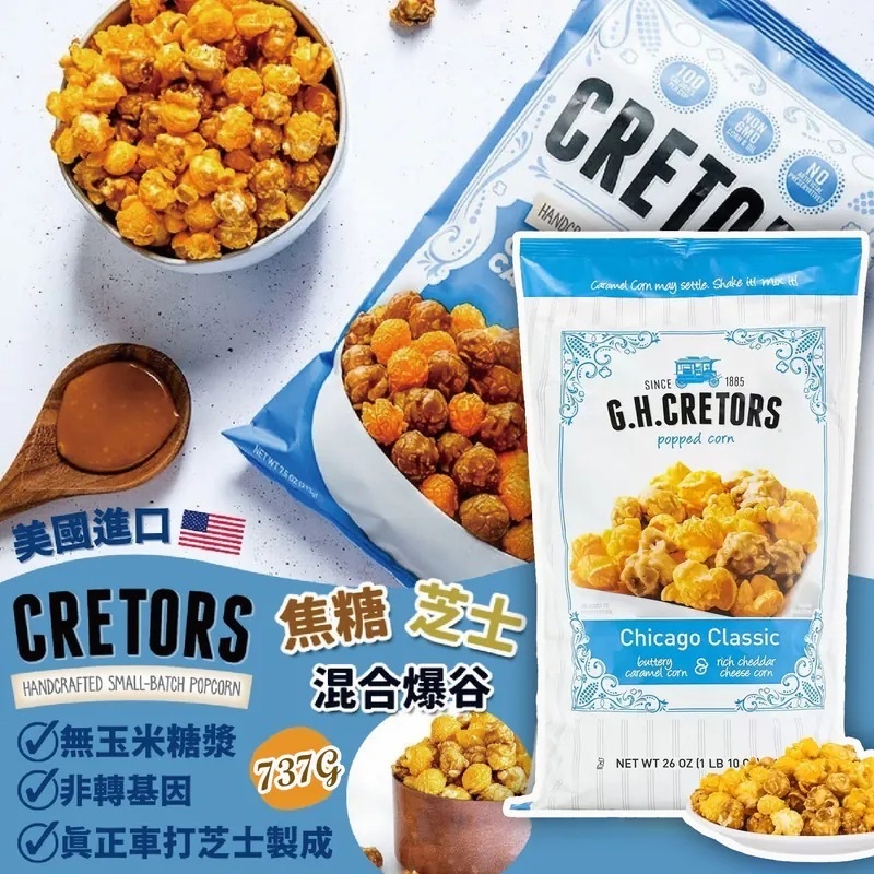 美國🇺🇸G.H.Cretors芝士&焦糖爆谷 1.6磅 ⛔截單時間:2025-11-22 💰$139/包 📆預計到貨日: 2026-01-20 美國G.H.Cretors芝士&焦糖爆谷 1.6磅 🉐🉐🉐一包爆谷有齊哂焦糖芝士兩種口味!🧀🧀 呢包珍寶裝成個上半身咁大包🤩有成1.6磅,平時香港1/4分量已經$5x勁貴!依家大大包只係$99,仲要係最受歡迎mix口味!呢隻係我同小朋友最愛芝加哥混合味🤤 一包有齊芝士同焦糖,芝士味係用真正芝士🧀做,好香又好味,焦糖味酥脆濃郁,粒粒爆谷大粒飽滿,食下醎食下甜勁滿足😋 超級大包勁正,開party、煲劇、開心share一次試晒2款 -產地:美國 -規格:1.6磅