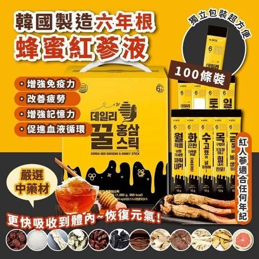 韓國🇰🇷六年根蜂蜜紅蔘液100條裝