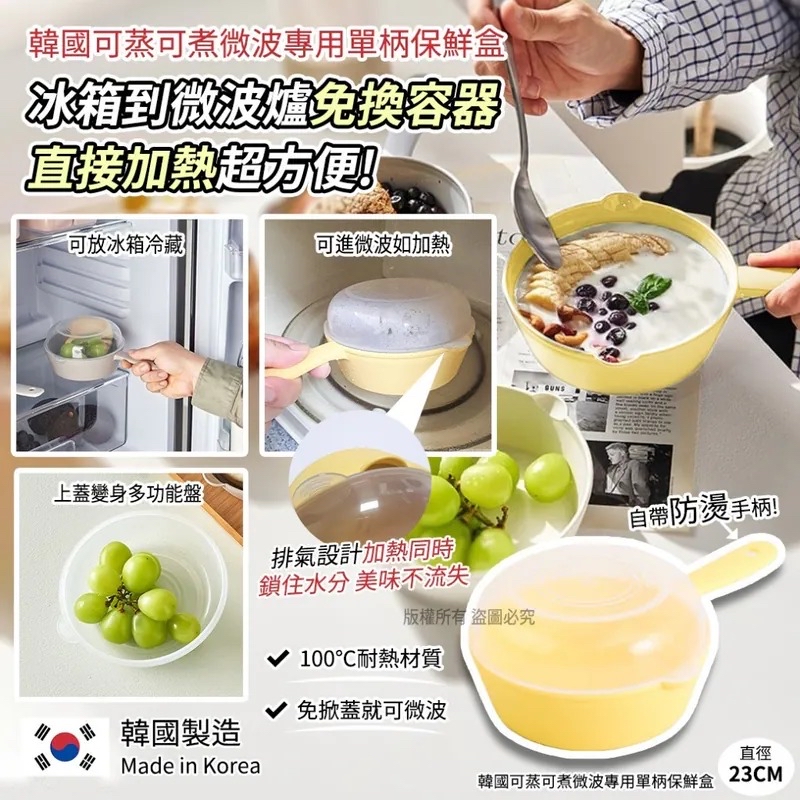 【韓國製造 可蒸可煮微波專用單柄保鮮盒】