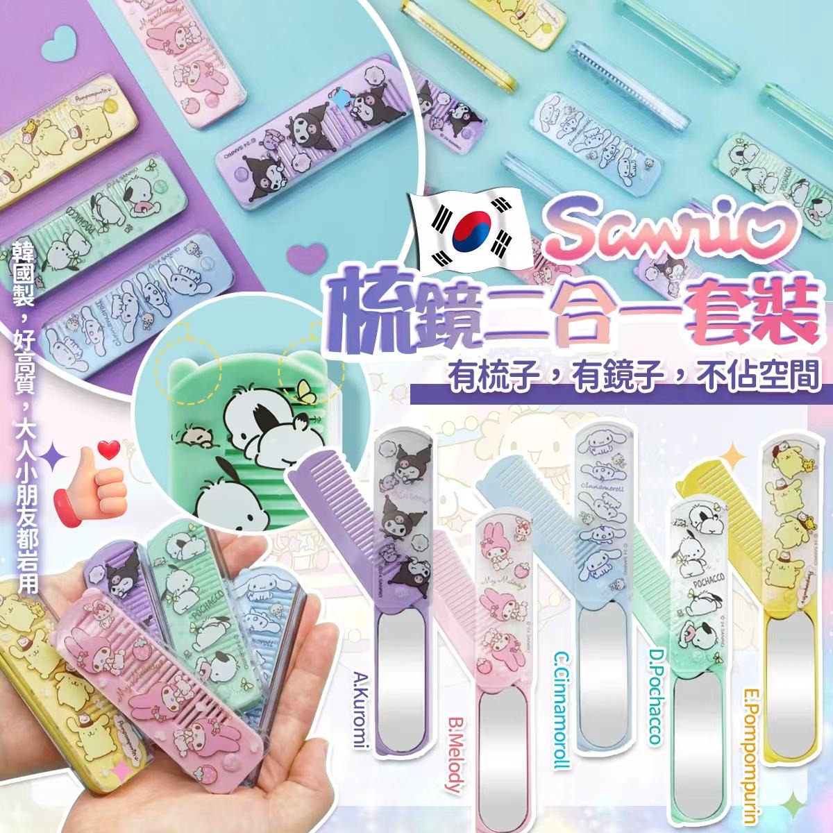 韓國🇰🇷正版Sanrio梳鏡二合一套裝 ⛔截單時間:2025-12-21 💰$59/套;2套以上$50/套 📆預計到貨日: 2026-02-15 韓國製,好高質🌈大人小朋友都岩用 :) 超級可愛,有梳子,有鏡子,配上萌爆Sanrio 角色✨細細把,方便帶出街而不佔空間。 🙉重點係Made in Korea 韓國製只限韓國內銷 :)🐽 🌈款式 A) Kuromi B) Melody C) Cinnamoroll D) Pochacco E) Pompompurin 韓國製