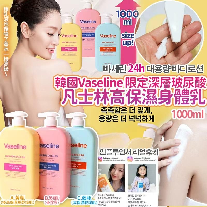 韓國🇰🇷直送@限時預購🔛深層玻尿酸Vaseline凡士林高保濕身體乳1000ml