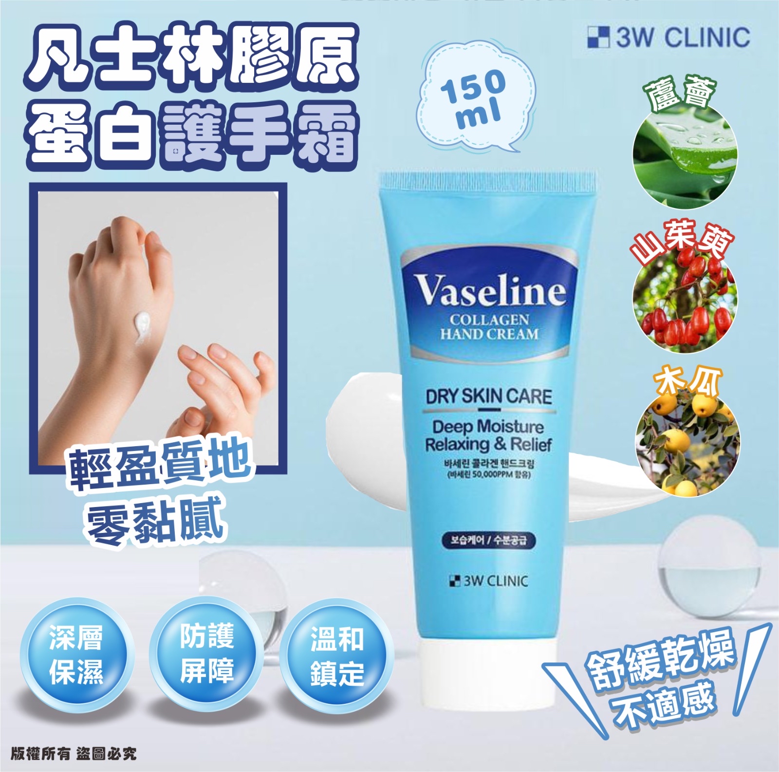 韓國 3W CLINIC 凡士林膠原蛋白護手霜 150ml (1套2支)