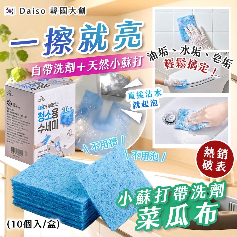 韓國🇰🇷Daiso大創強清潔小蘇打帶洗劑菜瓜布(一盒10入)