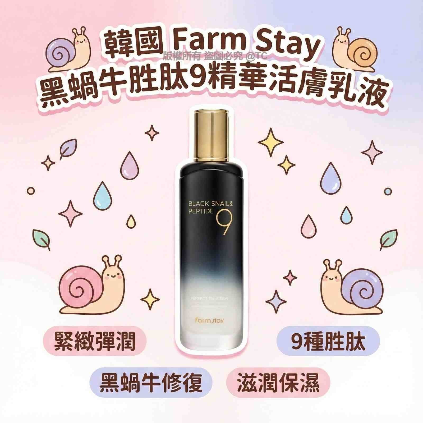 【韓國品牌 Farm Stay 黑蝸牛胜肽9精華活膚乳液 120ml】
