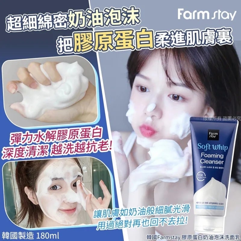 韓國🇰🇷直送@限時預購🔛Farmstay 膠原蛋白奶油泡沫洗面乳 180ml