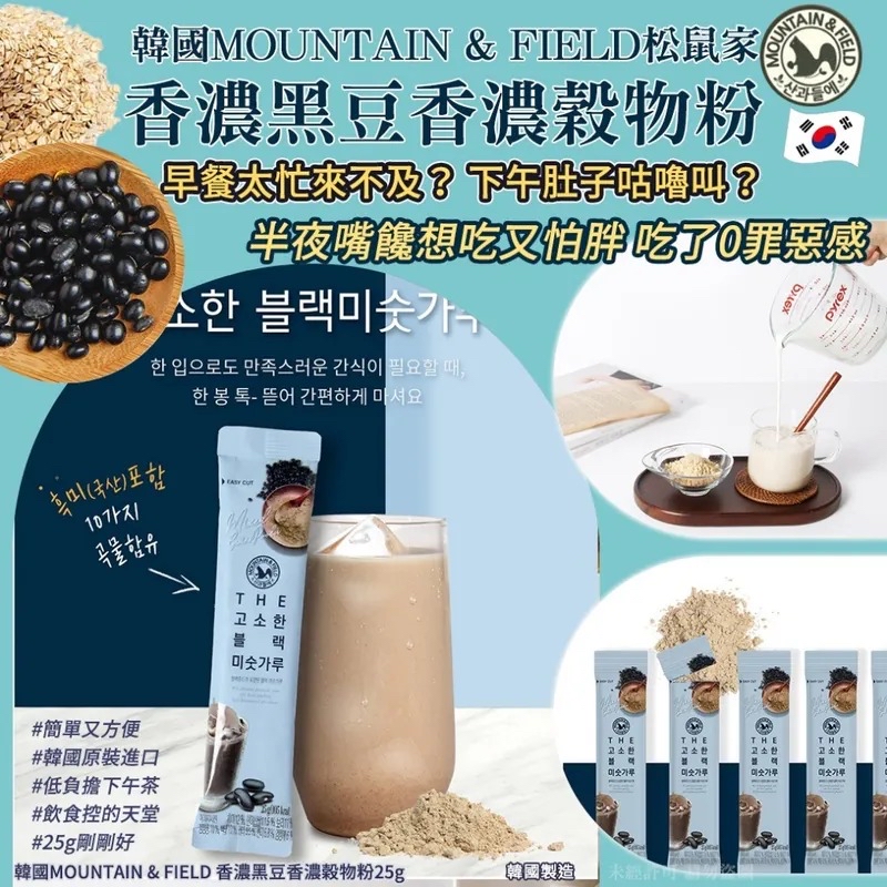 【韓國製造 MOUNTAIN & FIELD 香濃黑豆香濃穀物粉 (1套20包)】