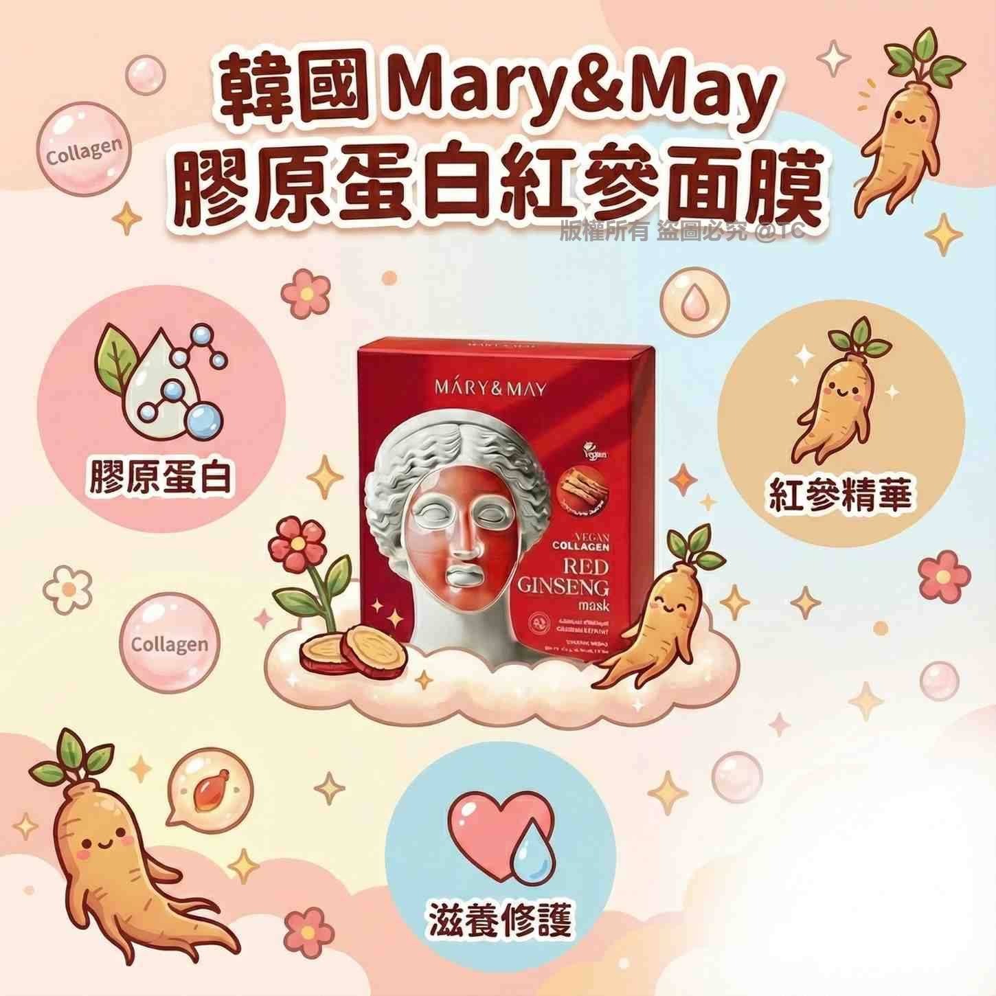 【韓國品牌 Mary&May 膠原蛋白紅參面膜 (一套4片)】