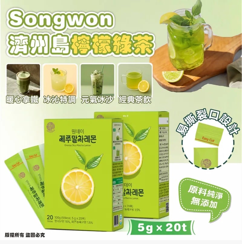 ✅ 嚴選濟州島原生抹茶與天然檸檬,原料純淨無添加